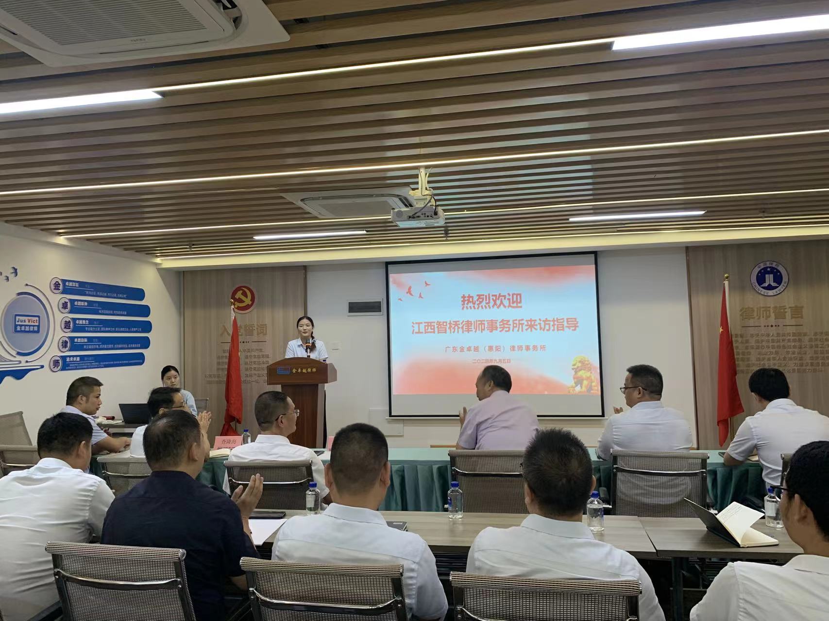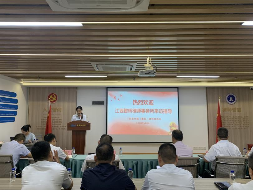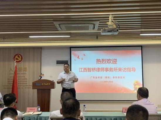 2024年9月5日下午,江西智桥律师事务所创所人张小兵律师莅临我所进行参观指导交流。广东金卓越律师事务所(总所)龙喜福律师陪同。主要对加强律所对党的政策方针与法律法规的衔接运用,推动律所内部专业化,提高团队分工协作能力,律所建设管理经验进行交流。